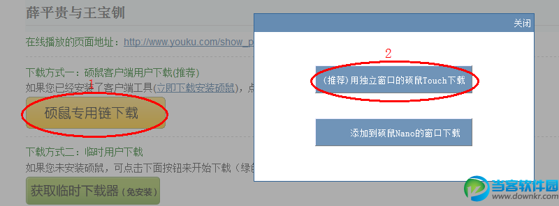 然后点击“硕鼠专用链下载”按钮,再点击“(推荐)用独立窗口的硕鼠Touch下载”按钮即可