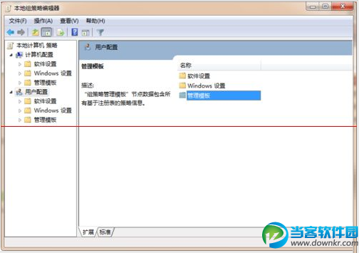 3、在”本地组策略编辑器“中,选择”用户配置“-”管理模板“