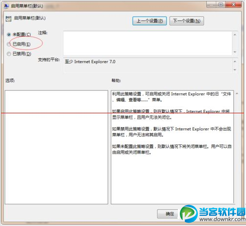7、选择”已启用“并点击确定,最后重启IE即可。