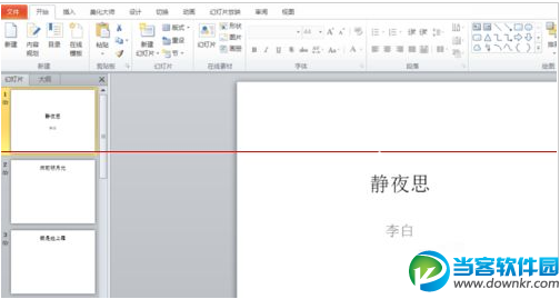 4、可在幻灯片里输入内容,这里仅以李白静夜思诗词为例