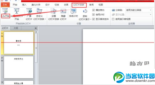 6、接下来需要观看效果的话点击“幻灯片放映”,然后点击“从头开始”即可看到。