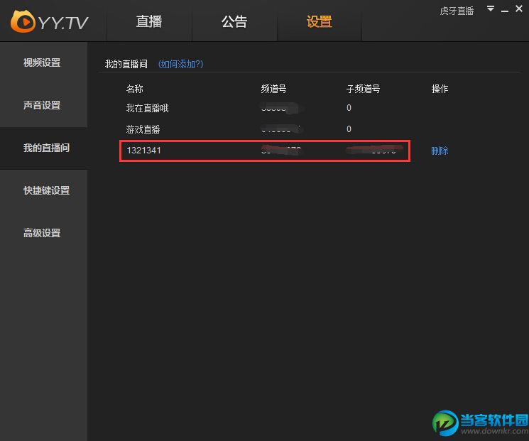 可以在“设置”-“我的直播间”里对已添加的直播间进行管理