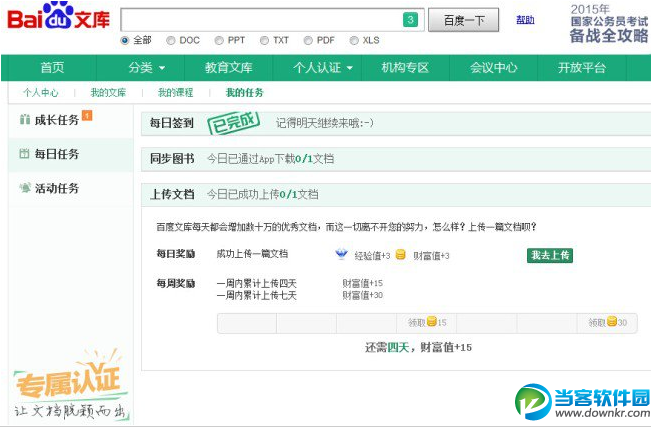 每日奖励:成功上传一篇文档 经验值+3 财富值+3