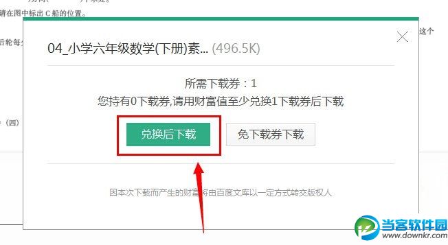 2、我们在下载文档时,如果需要下载券,则会提示您兑换后下载,如下图:
