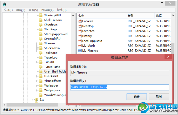 若是这种原因引起的,只需运行Regedit命令启动注册表编辑器,定位到“HKEY_CURRENT-USER\Software\Microsoft\Windows\CurrentVersion\Explorer\User Shell Folders”,双击“My Pictures”,在“数值数据”中输入“%USERPROFILE%\Pictures”,将图片保存路径更改为自己当前所用的图片库对应的真实位置路径即可。