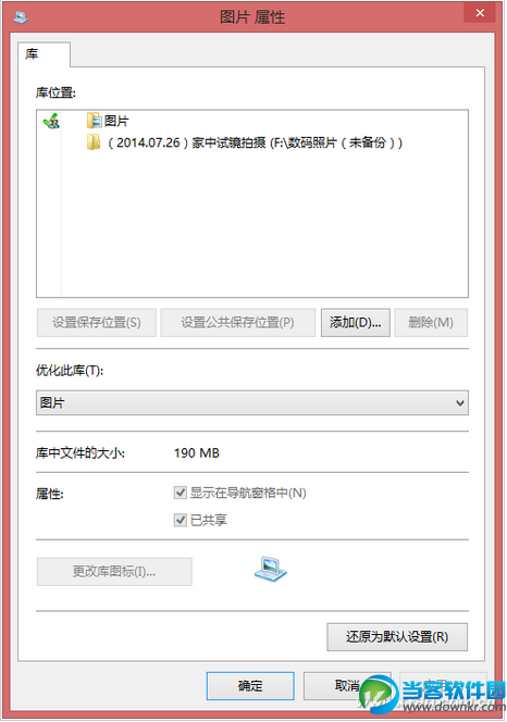 修改“图片”库属性来恢复图片保存路径,也能让截图工具路径保存恢复正常。使用Win+E组合键启动资源管理器,在左侧栏导航窗格中定位到“库→图片”,右键单击“图片”并选择“属性”命令,弹出“图片 属性”对话框,在其中点击“还原为默认值”,并依次点击“应用”、“确定”,即可恢复抓图保存默认路径。