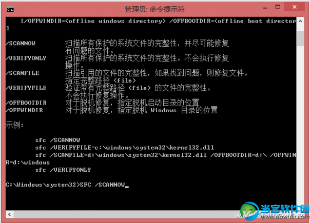 以命令管理员方式进入命令提示符窗口,然后运行SFC /SCANNOW命令进行系统修复。该命令会自动修复遭到损坏的系统文件,让产生错误的系统功能恢复正常。