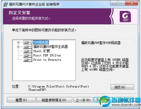 3. 进入下一步,从两种安装类型中选择一种安装,可默认安装到 C:\Program Files\Foxit Software\,或者点击“更改…”自定义选择安装目录。