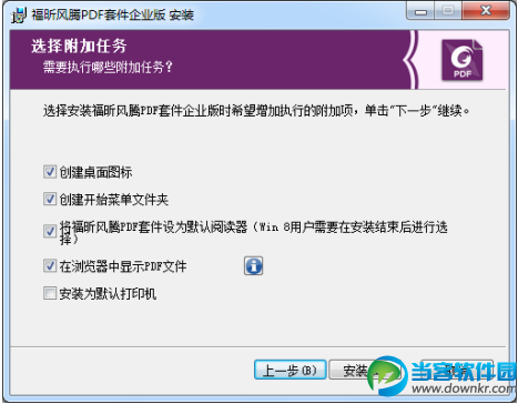 D) 在弹出的对话框中,可自定义勾选安装时自动执行的任务,然后点击“安装”开始安装。