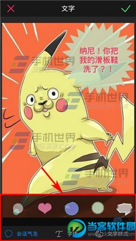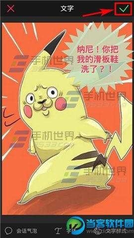 3、输入文字后,可以在下方对文字的【会话气泡】样式、【字体】和【文字样式】进行调整,完成后点击右上角【√】保存即可。