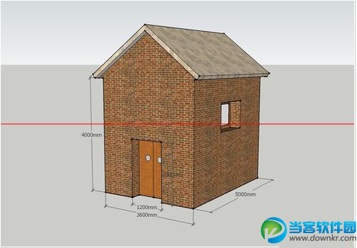 首先,通过‘矩形’工具绘制一个矩形,绘制完后根据小房子的尺寸要求,键盘输入“5000,4000”,回车,即绘制出长5米、宽4米小房子的底座。(因为下面做屋檐的时候两侧墙体会往里各推200mm,就会成为符合要求的3.6米)