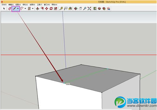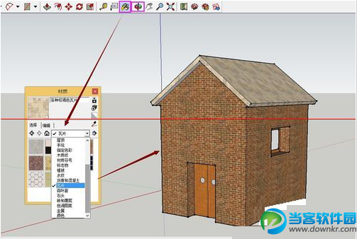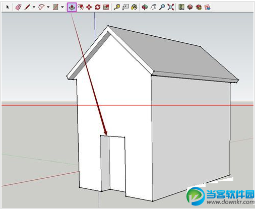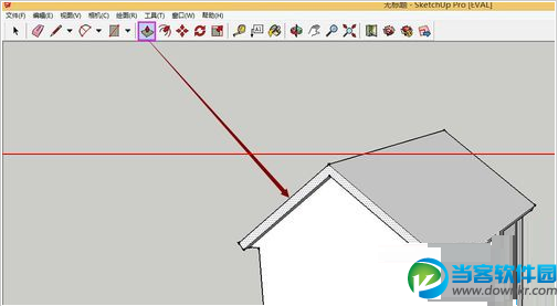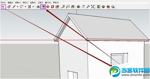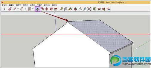 5、小房子是有屋檐的,所以需要使用‘推拉’工具将屋顶推拉出屋檐。