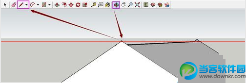 10、选中无用的两条线段,将其删除,这样屋顶的样式基本建好。