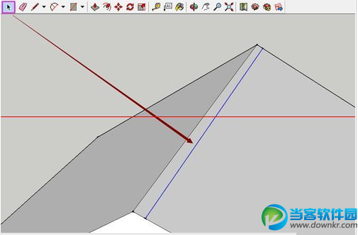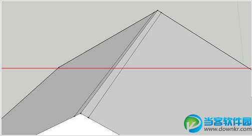12、按住Ctrl键同时‘选择’屋檐的两条边线后,通过‘偏移’工具向下绘制出如下图所示的图形。