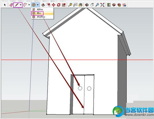 17、通过‘直线’工具和‘圆’工具,绘制出木门的形状。