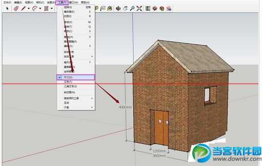 14、接下来制作小房子的门,将底线平均分成三等分,即中间线段长1200mm,作为门的宽度。