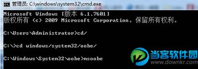 接下来输入cd windows/system32/oobe/ 进入这oobe目录后在输入msoobe.exe,实操完后窗口关不掉可同时按下CTRL+ALT+DELETE调出任务栏,结束任务即可关闭窗口。直接下一步下一步安装也不要紧,对系统唯一的影响是多建立了一个用户,还有就是输入法被还原成出厂设置了。