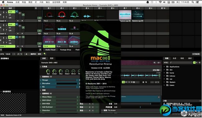 刚安装的Resolume含有一个演示合成。合成是完整的Resolume设置单元-每个合成包含几组片段、特效及其他一切演出所需的设定。