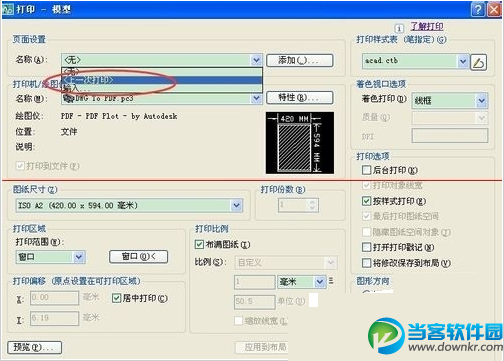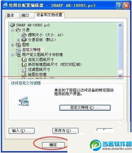4、为了快捷打印,我们可以设置“页面设置”为上一次打印“。在选择好的打印机边上的”特性“点击。设置”自定义特性“——总是从A3口进纸,都打印A3的情况下。