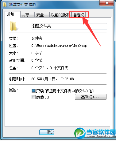 在弹出“新建文件夹 属性”窗口中,点击“自定义”按钮,如图所示