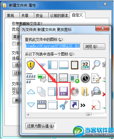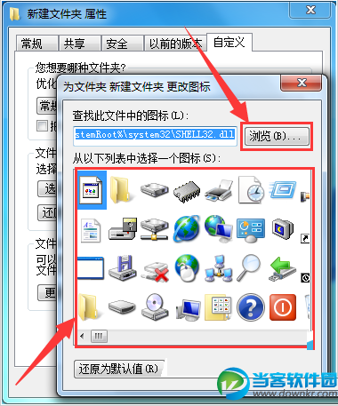 在弹出的新窗口中,可以选择电脑本身自带的图标(也可以点击“浏览”按钮,更换自己想要的ico图标),如图所示