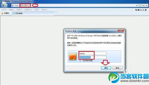然后,再打开电脑中的浏览器,输入正确的登录IP地址,确认无误的话,就能弹出登录的用户名、密码设置框,依次输入▶确定。