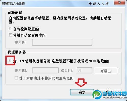 开始▶控制面板▶Internet 选项▶连接▶局域网设置▶确保代理服务未被选中▶确定