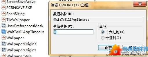 第三步、将新建的这个值重命名为“WaitToKillAppTimeout”,系统默认数值数据为“0”不需要修改,直接保存修改后退出。