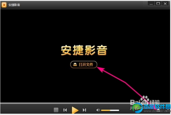 1、首先下载安装安捷播放器,然后打开安捷播放器,在软件中间点击“打开文件”或点击右下角的标志,都可以打开本地现有的视频文件进行播放,目前安捷支持主流格式视频播放