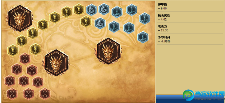 红色攻击x9;黄色护甲x9;蓝色魔抗x3冷却缩缩减x6;精华攻击x3