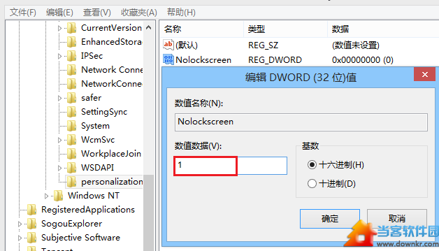 将NoLockScreen值改为1(双击就能修改)。