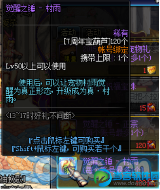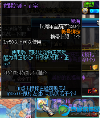 DNF7周年活动宝葫芦奖励一览,在即将到来的DNF7周年活动当中,玩家可以收集7周年宝葫芦来兑换丰厚的活动奖励,其中包含特定活动称号附魔珠与宠物觉醒锤,而虽然已经知道玩家可以利用宝葫芦兑换这些奖励。 不过宝葫芦的掉率究竟有多高,据体验服童鞋反映,其实宝葫芦的掉率还是相当不错的。下面让我们来看详细的文章内容。 DNF7周年宝葫芦掉率测试: 7周年宝葫芦刷图掉率还不错,150疲劳能掉30多个吧。不过这个仅仅是体验服掉率,正式服掉率如果异常感人可就不能怪我了。 DNF7周年活动之宝葫芦掉率实测,玩家之前已经提到测试掉率大概150疲劳30个宝葫芦,那么4天的疲劳就能换到锤子,而附魔宝珠只要15个葫芦。这样相信玩家大概一周左右的时间技能把想要的东西给刷齐了。个人预计正式服掉率会改成一管疲劳10个宝葫芦你信不信,毕竟让你多刷才是策划真正想要的哦。 DNF7周年宝葫芦兑换物品一览: |