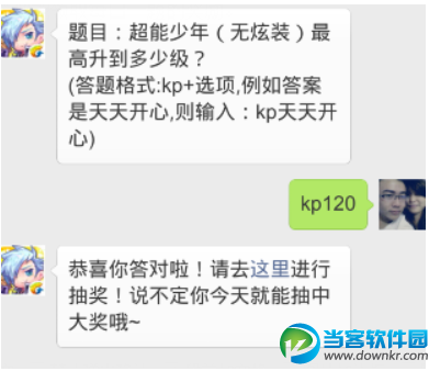 超能少年(无炫装)最高升到120喔,所以6月18日的天天酷跑每日一题答案就是kp120,最后希望所有的小伙伴都能领取每日一题的奖励。