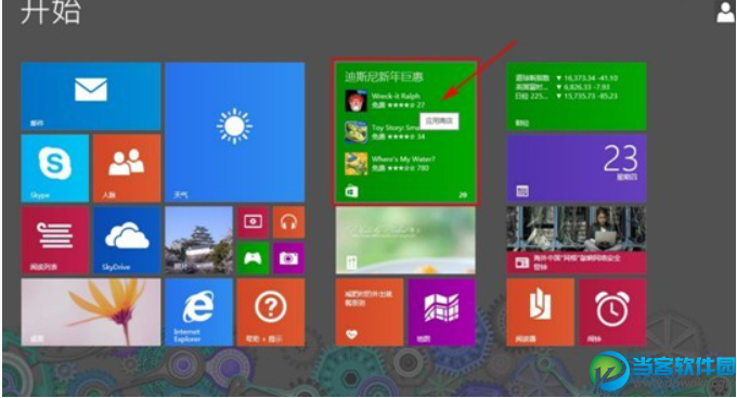 1.进入Win8系统开始桌面,点击开始桌面“应用商店”磁贴进入。