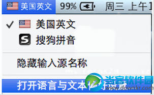 二、如果想更改此快捷键设置,可以点击菜单上的输入法图标,打开语言与文本偏好设置。
