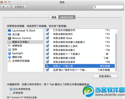 四、在打开的键盘设置对话框中,选择左侧的键盘和文本输入,选中右侧的选择上一个输入源,就可以对快捷键进行设置了。