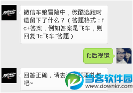 问题:微信车娘冒险中,薇酷逃跑时遗留下了什么?(答题格式:fc+答案,例如答案是飞车,则回复“fc飞车”答题)