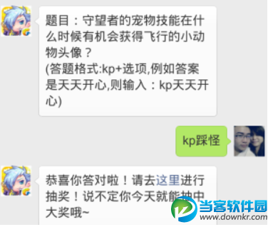 守望者的宠物技能在踩怪时候有机会获得飞行的小动物头像喔,所以6月30日的天天酷跑每日一题答案就是kp4,最后希望所有的小伙伴都能领取每日一题的奖励。
