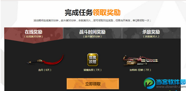 逆战7月周年版本活动也正式开启啦,新手礼包、好礼抽奖、完成任务领取奖励,各种武器嗨翻天!加特林-狂蟒、猎魔执照、血月等大奖等你来拿。下面就为大家带来逆战7月周年版本活动地址与介绍,一起来看看吧! 活动时间:7月7日——7月28日 活动地址:点击进入 盛情迎新 好礼相送 在活动期间,7月7日以后成功注册的用户即可领取新手礼包,新手礼包有几率获得苹果手表奖励,QQ会员可以额外领取会员礼包,单Q限领取一次。 邀请好友找猫猫 在活动期间,每天通过本页面邀请好友后,可获得一次抽奖机会,点击翻开牌面可以随机获得奖励道具,如果邀请的好友到达页面并成功领取新手礼包,即可再获得一次抽奖机会; 完成任务领取奖励 活动期间在线满30分钟,战斗满50分钟,杀敌满30人,即可领取对应奖励,仅限当天有效,单Q限领取一次; 关注逆战部落 做逆战达人 在活动期间,成功关注逆战兴趣部落即可领取部落礼包一份,单Q限参与一次。 活动规则 1.活动期间:2015年7月7日-7月28日; |