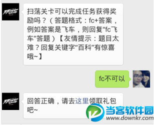 问题:扫荡关卡可以完成任务获得奖励吗?(答题格式:fc+答案,例如答案是飞车,则回复“fc飞车”答题)