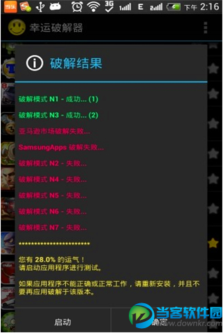这个过程,你得稍微等待一下。点击“应用”以后,程序会自动进行破解,根据被破解的游戏体积和你的设备性能的不同,此过程将消耗30秒到2分钟不等,请耐心等待。破解完之后会弹出下图所示图片,一般情况下只要运气不是0%,都是可以成功破解的,赶快点击“启动”试试吧,一般上都是成功了。