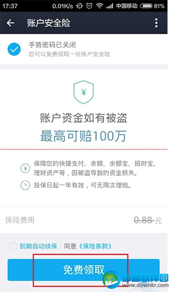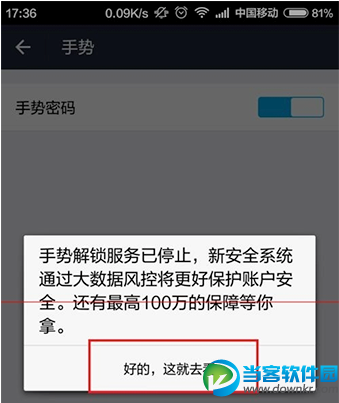 支付宝9.0免费安全险怎么领取?支付宝9.0取消了手势密码,但是随之而来的是为我们免费提供一年的帐户安全险,具体该怎么领取呢?下面当客小编给大家带来支付宝9.0免费获得安全险的教程,需要的朋友可以参考下。 1、首先,请大家将自己手机上安装的支付宝客户端应用程序更新到最新版本,然后登陆自己的支付宝账号,进入支付宝客户端主界面,点击左上角的头像,如下图所示。 2、接下来,我们将进入支付宝帐户的相关设置,点击选择“设置”选项,进入支付宝客户端及账户的设置选项。 3、进入支付宝账户的设置界面以后,点击选择“帐户安全”设置项,在账户安全设置项目中,我们需要找到手势密码的设置选项。 4、在接下来打开的页面中,我们点击“手势”选项,开始设置手势的相关项目,也就是手势密码的设置选项。 5、在接下来打开的页面中,我们会看到支付宝手势密码开关已经处于关闭状态,是的,无论之前我们是否已经设置了手势密码,当更新到新版本以后,手势密码就会自动关闭,所以我们点击手势密码开关,将其打开。 6、当我们打开手势密码的开关之后,会弹出“手势解锁服务已经停止”的消息提示,取而代之的是大数据风控系统,听起来很厉害的样子,那么我们就点击”好的,这就去看“按钮。 7、接下来,就会弹出帐户安全险的免费领取页面,点击”免费领取“按钮,就可以免费领取帐户安全险一年的使用权,但是需要大家注意的是,旁边的”到期自动续保“按钮要记得关闭,如果你不介意的话,那么勾选上也可以,随之而来的就是一年交一点钱。 8、接下来的页面中会显示我们已经成功购买了帐户安全险,同时显示了该账户安全险的保险期,如下图所示。等一会儿之后,支付宝客户端会弹出购买数据,表明我们已经投保成功。 9、接下来,我们返回到支付宝客户端主界面,点击主页面中右下角的”财富“菜单项目,就可以看到财富的详细信息。 10、在接下来弹出的页面中,我们会看到”帐户安全险保障中“的信息提示,有此信息提示的也就意味着我们已经成功领取了帐户安全险,是免费使用一年哦,不要白不要,小伙伴们赶快试试吧。 如果大家想了解更多软件教程最新资讯,请持续关注本站,本站小编将在第一时间为大家带来最好看、最有趣、最新鲜的软教资讯。更多精彩内容,尽在当客下载站。 |