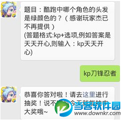 酷跑中刀锋忍者的头发是绿颜色的喔,所以7月16日的天天酷跑每日一题答案就是kp刀锋忍者,最后希望所有的小伙伴都能领取每日一题的奖励。