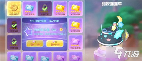 飞碟坐骑的全名是“暗夜喵喵车”,玩家可以通过抽取奖池的方式来获取这个坐骑。需要抽中五星的奖励“坐骑兑换币”才能够兑换获取。玩家每次抽奖需要花费60金豆,完成抽奖提升1点幸运值。幸运值越高,星星币产出的概率也就越高,当幸运值达到200的时候,星星币是100%产出。