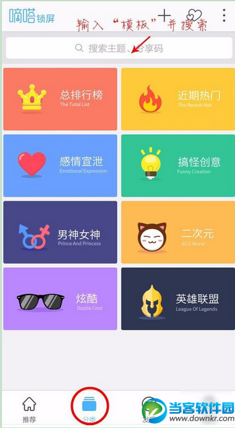 打开嘀嗒锁屏,点击“分类”,输入“模板”并搜索。