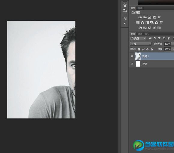 把这个图层复制到小罗伯特唐尼画布,立马把图层混合模式改为“滤色”。在画布之间的图层复制我都是很野蛮的,直接全选后Ctrl+C,在别的地方Ctrl+V。图层复制命令几乎不用,除非是新建画布什么的。