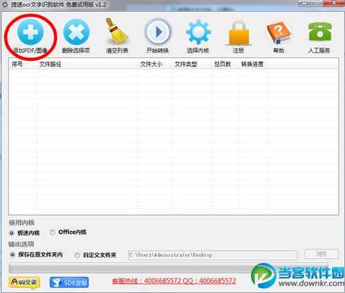 2、点击上方左起第一个“添加文件”按钮,将需要识别的文件按提示添加到软件中