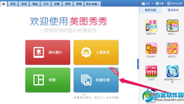 1、在美图秀秀主页面中可看到批量处理的选项,点击进入批处理