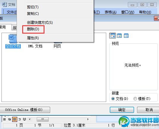 3、在弹出的模板框,右键删除掉命名为“空白模板”的模板,点击确定,重启word即可正常打开
