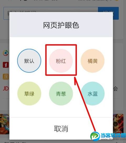 5、选择你喜欢的网页护眼色【粉红】、【橘黄】、【草绿】、【青葱】、【水蓝】。